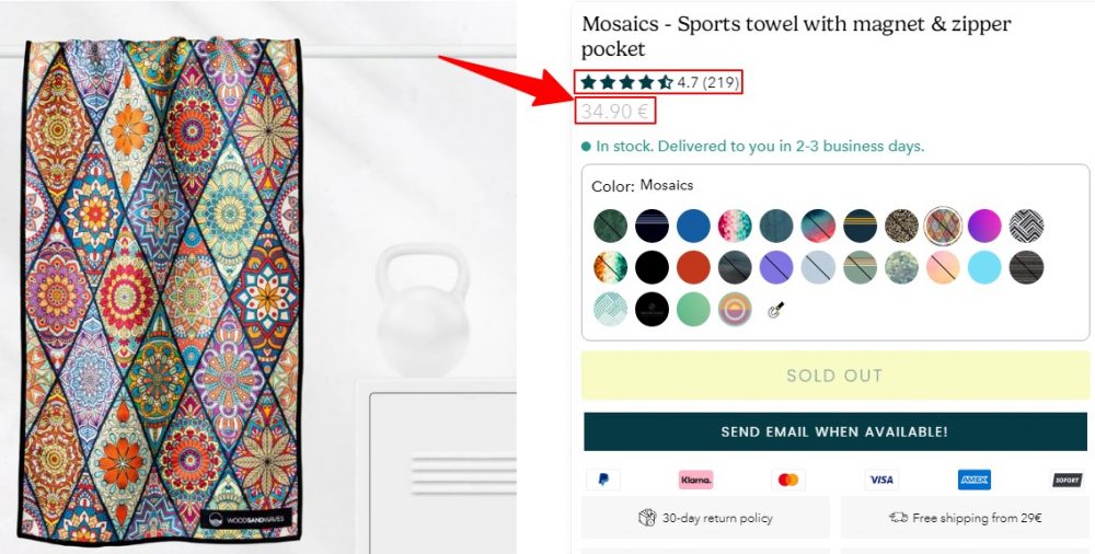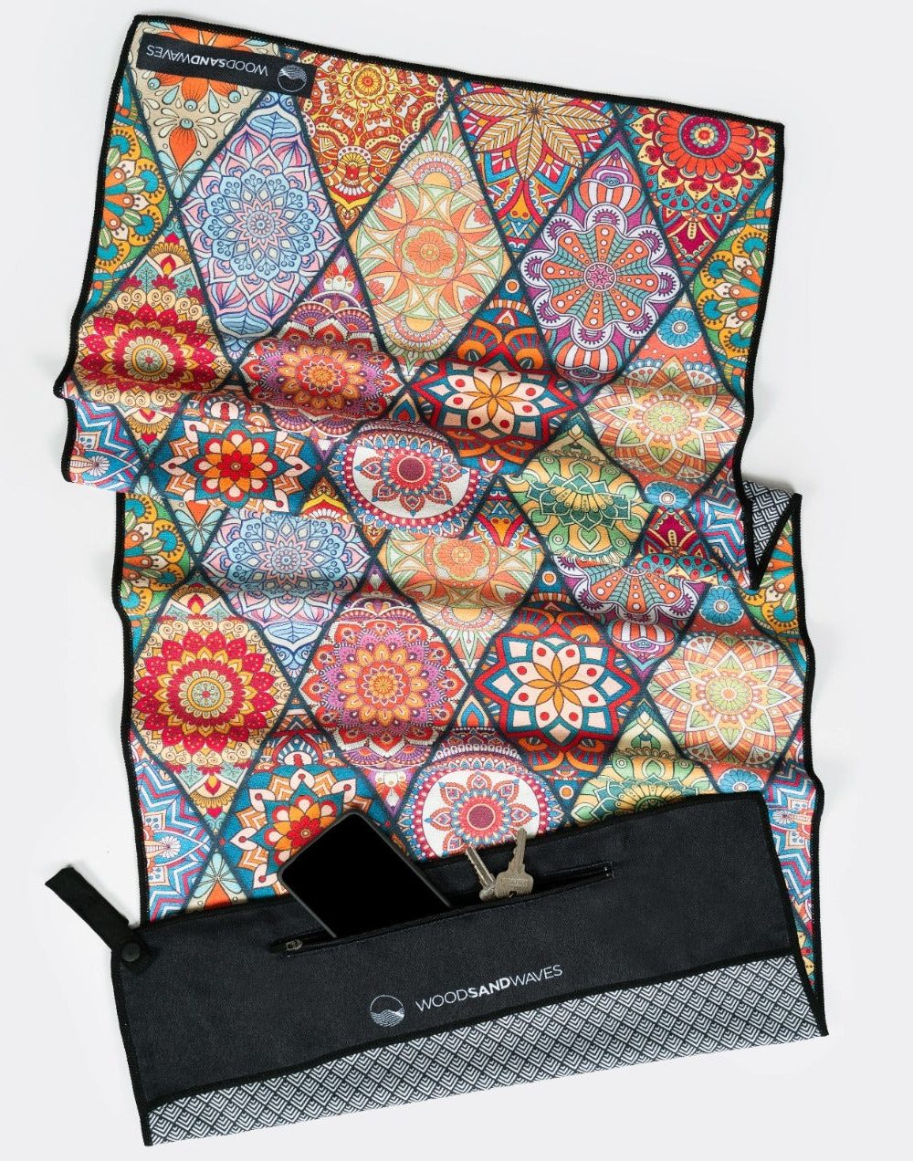 Woodsandwaves Mosaics Sports Towel With Magnet & Zipper Pocket 1m3 x 50cm