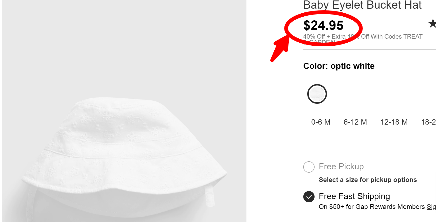 Mũ rộng vành chống nắng Gap Baby Eyelet Bucket Hat 509155 size 6 tháng tới 2 tuổi