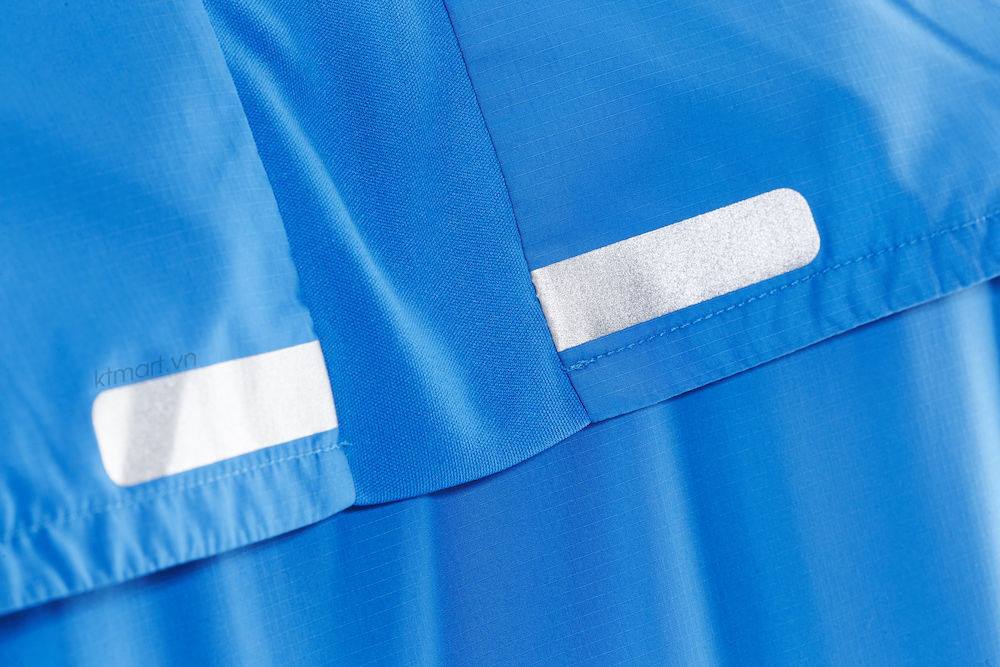 – Áo nhẹ và cản gió, có dải phản quang ở khoác kéo, 2 bên cánh tay áo và ở phía sau áo, khi không dùng có thể gói gọn áo vào túi sau lưng.