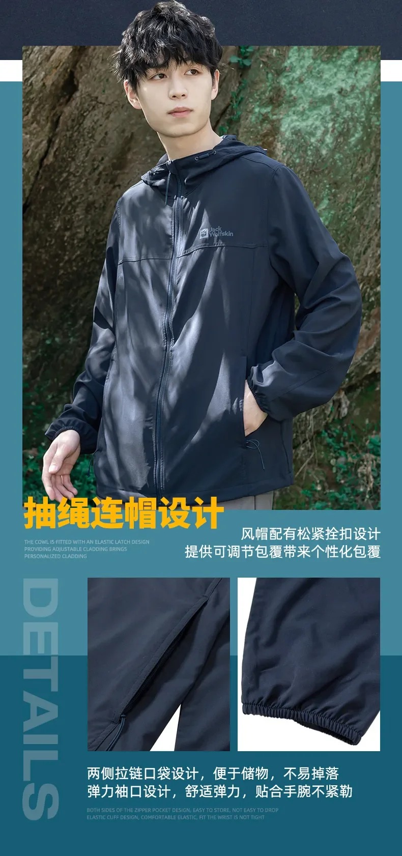 Áo khoác chống nắng, chống gió Jack Wolfskin Sun Protection Clothing Men’s Summer New Outdoor Quick-Drying Sun Protection Long-Sleeved Jacket Wind Shield 5319053 size M US