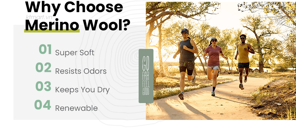 – Với chất liệu TỰ nhiên Merino Wool sẽ giúp Bạn điều hòa nhiệt độ cơ thể theo nhiệt độ Môi trường – Giúp Bạn giữ Ấm khi thời tiết Lạnh và giúp Bạn mát mẻ khi nhiệt độ Nóng.