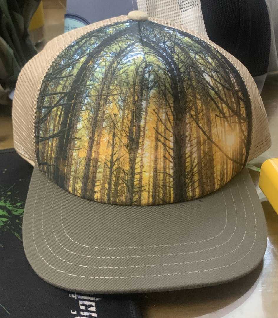 Một chiếc mũ xuất Mỹ với hoạ tiết rừng thông cùng ánh mặt trời cực kỳ đẹp và ấn tượng.