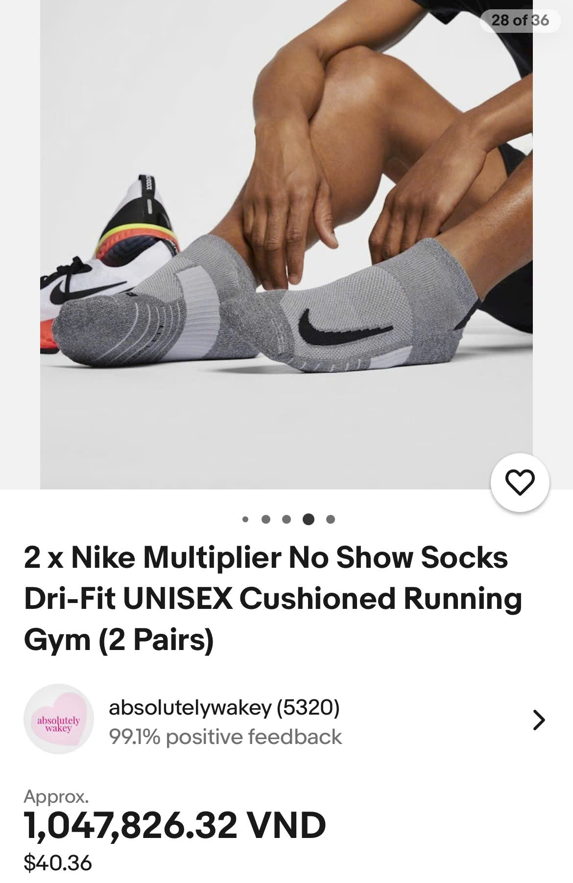 Set 5 Tất thể thao, chạy bộ Nike Multiplier No Show Socks Dri-Fit UNISEX Cushioned Running Gym size L