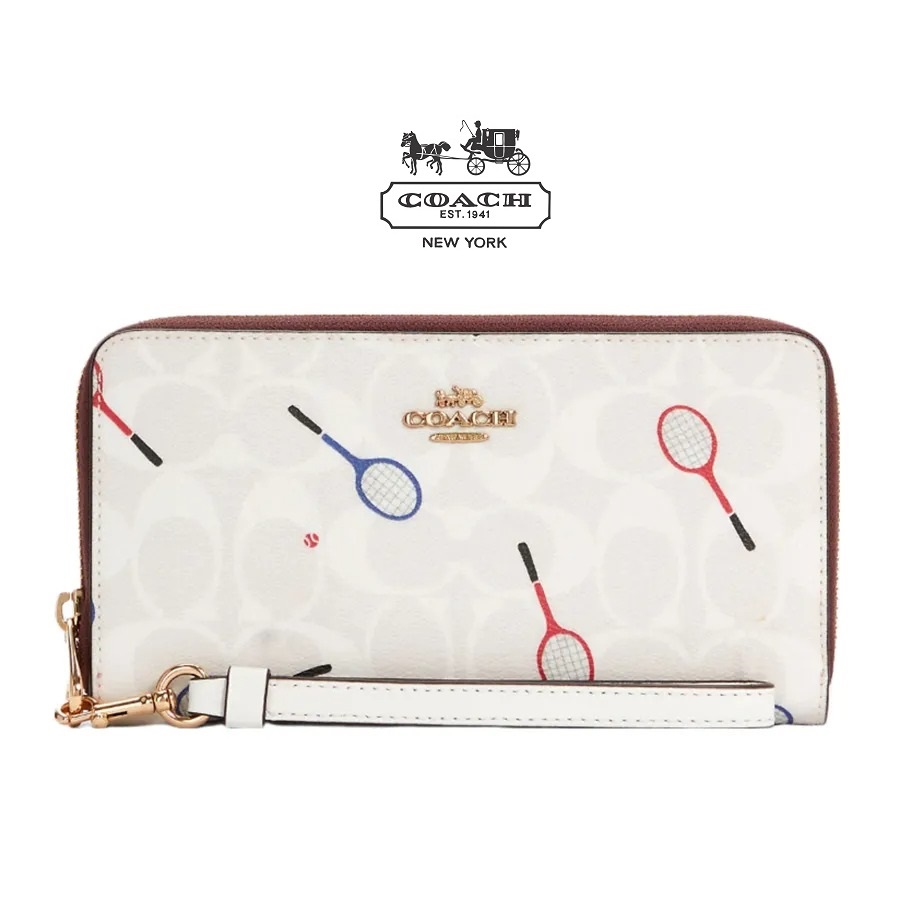 Ví Coach Long Zip Around Wallet In Signature Canvas With Racquet Print C8385