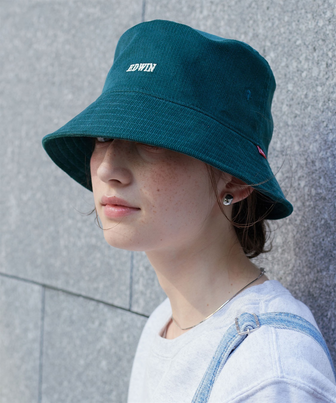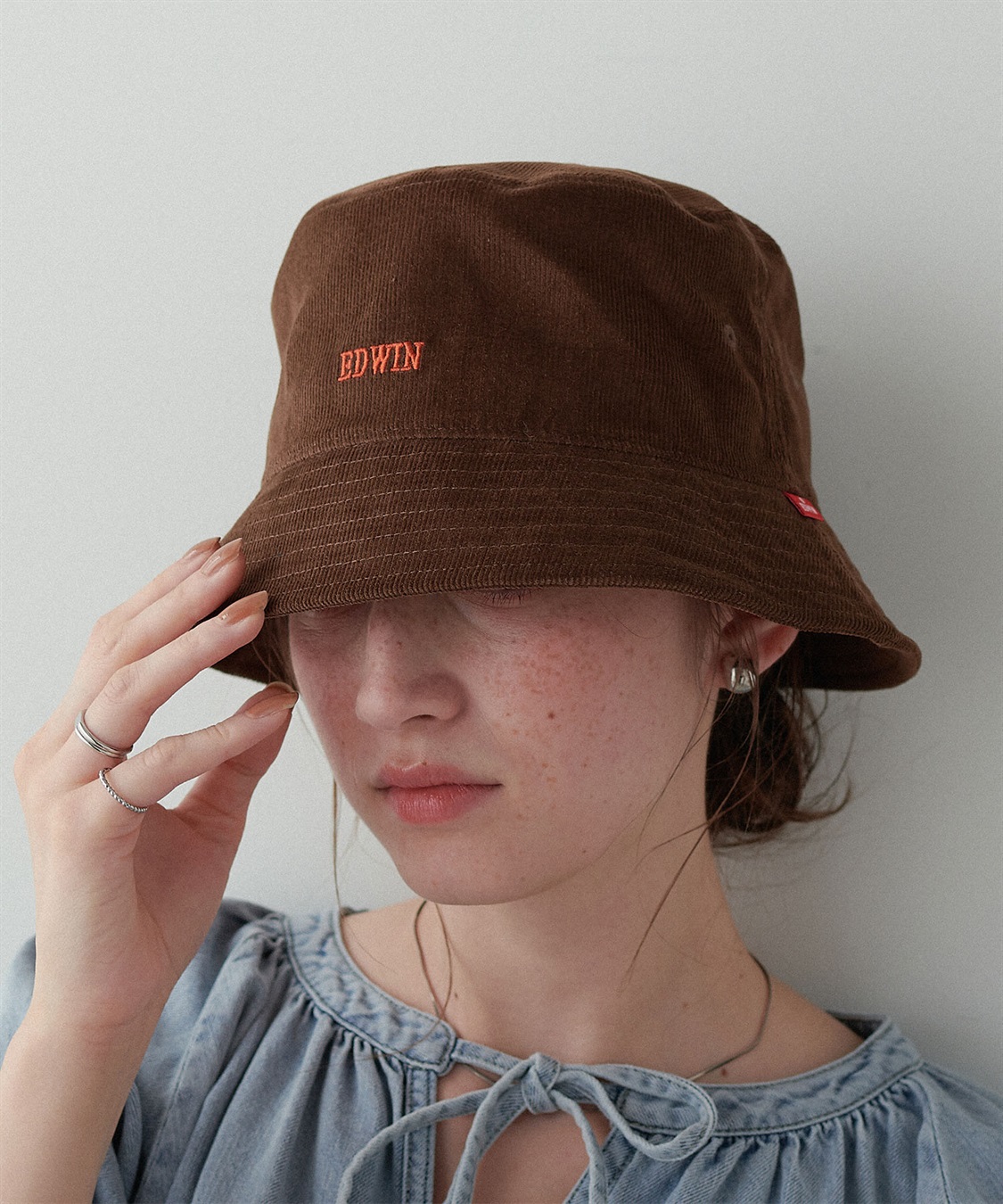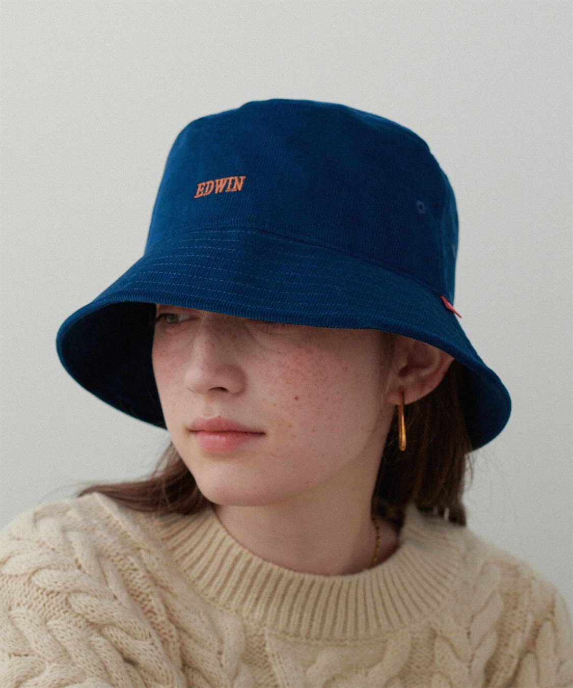 Mũ nhung EDWIN Corduroy Embroidered Bucket Unisex Hat size 58cm