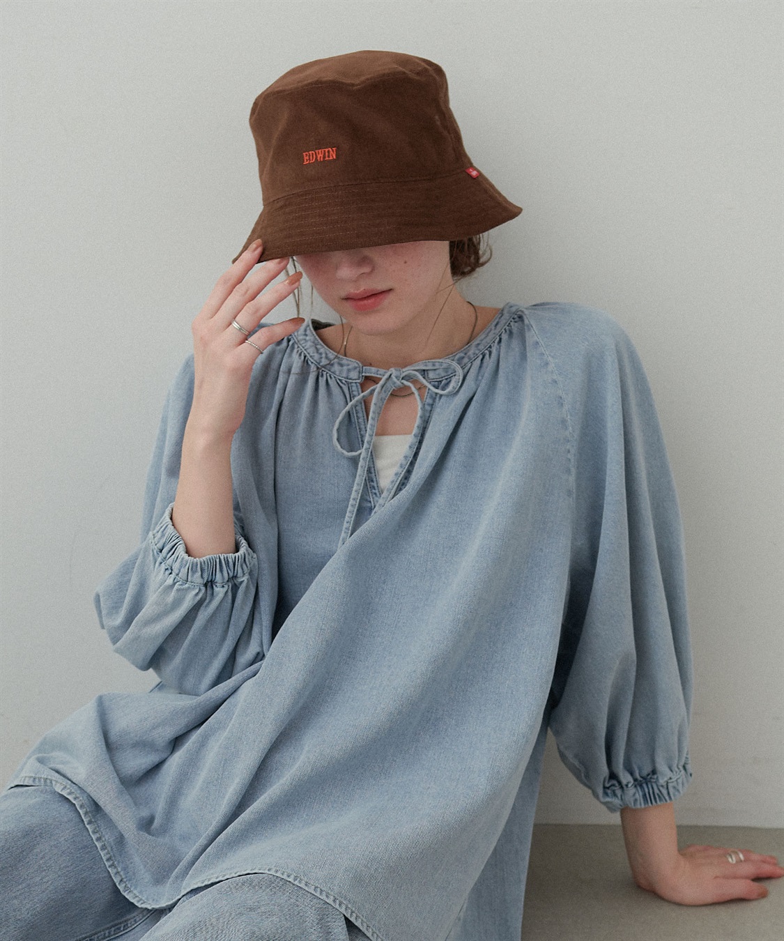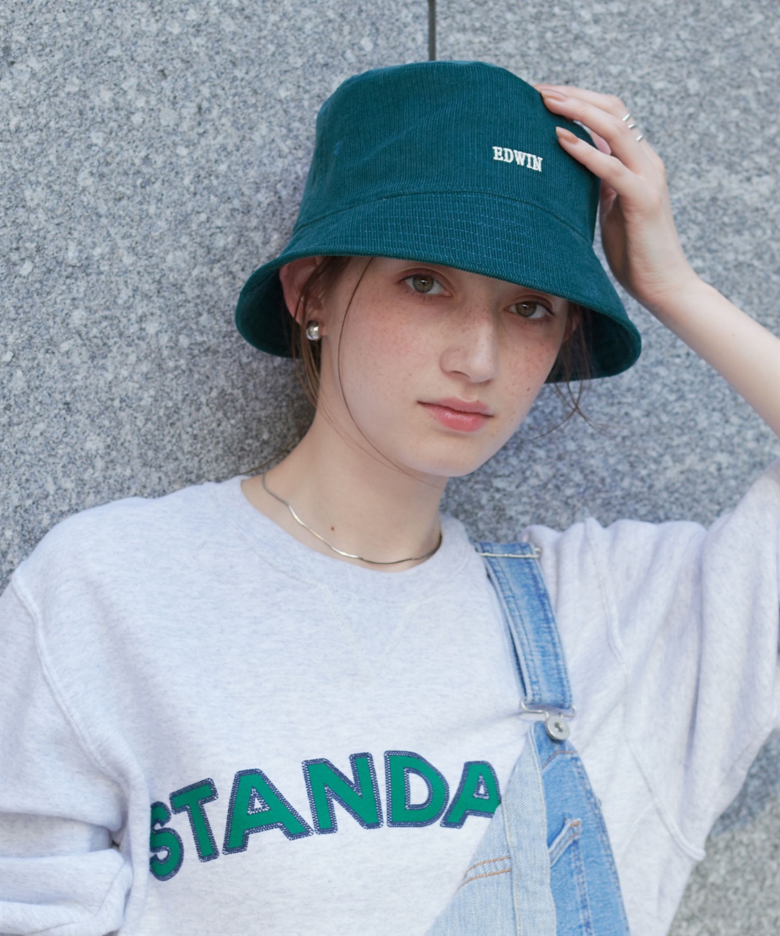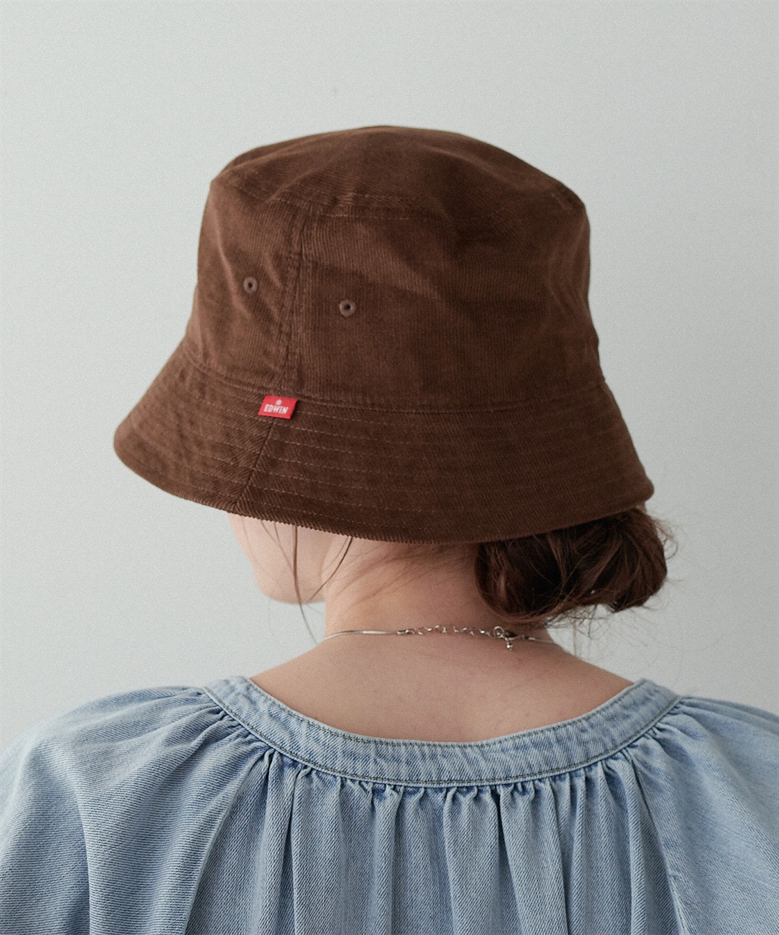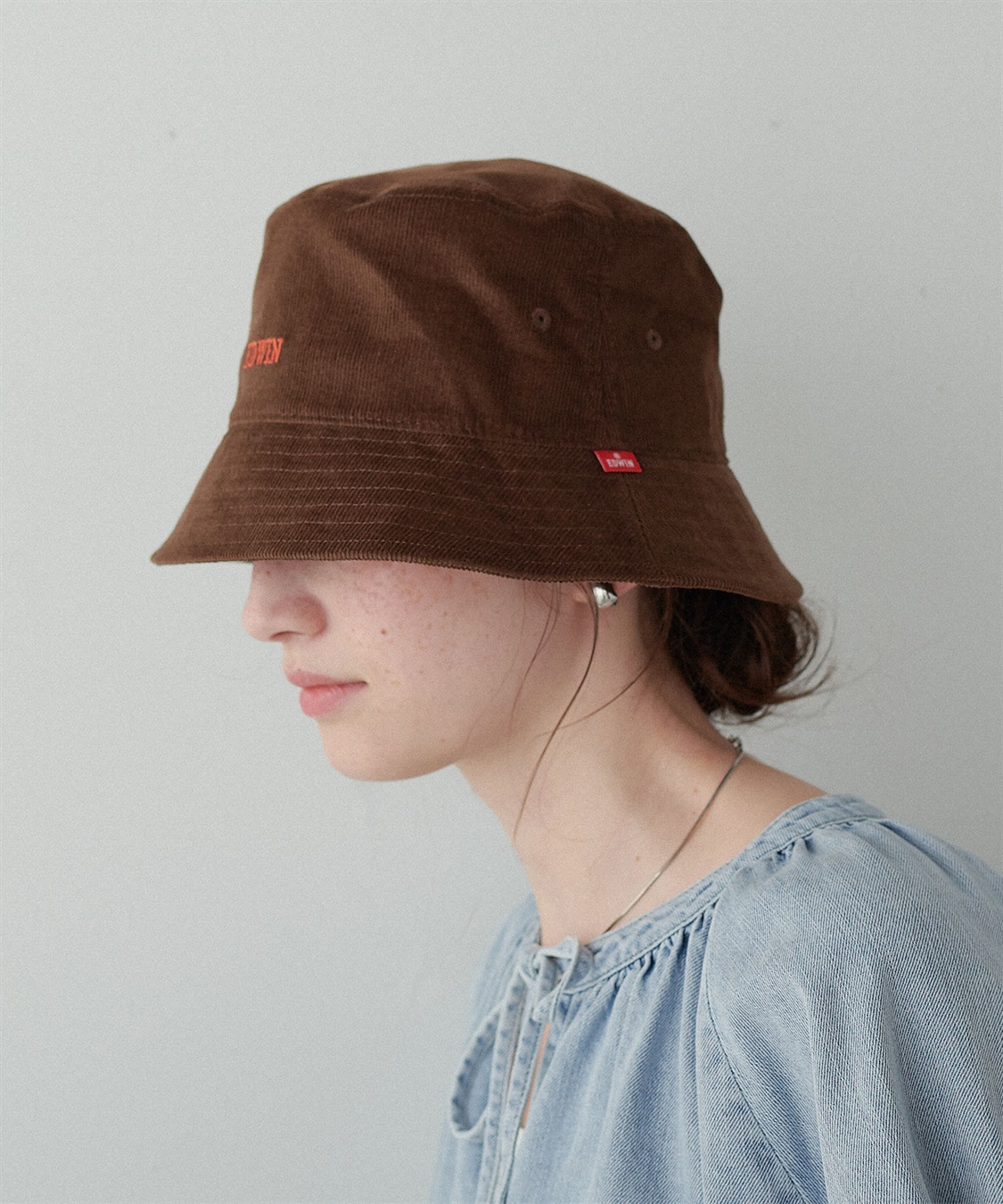 Mũ nhung EDWIN Corduroy Embroidered Bucket Unisex Hat size 58cm