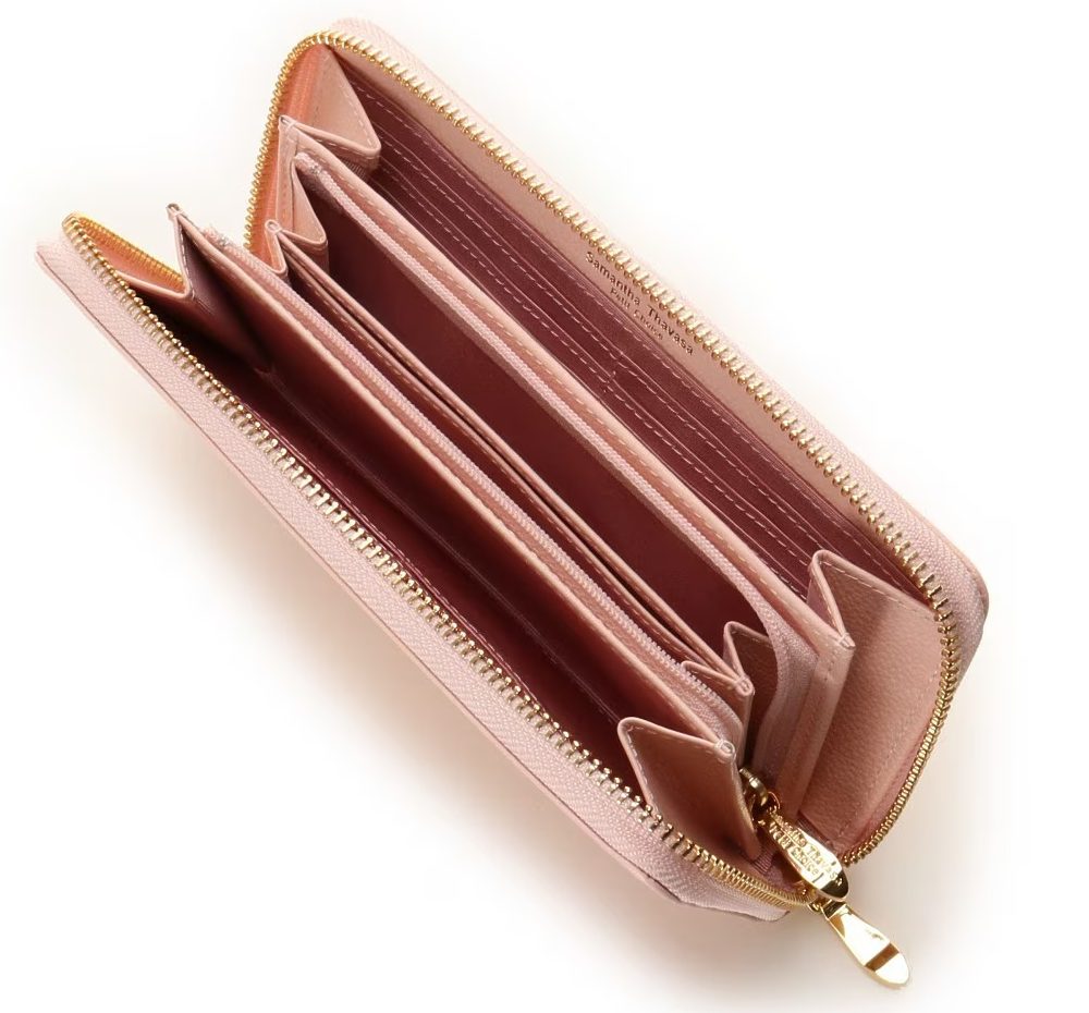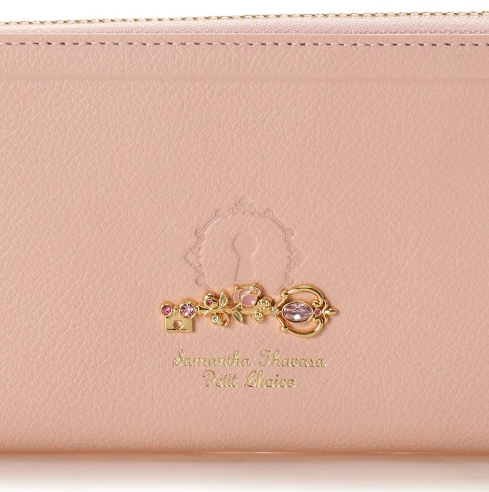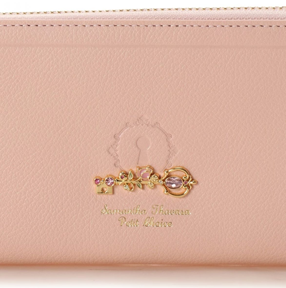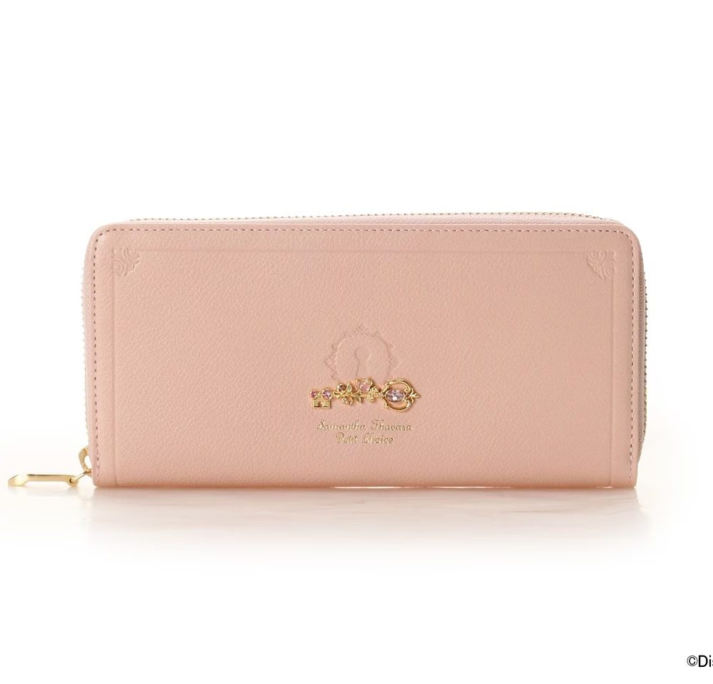 Chiếc ví hồng “Công chúa Aurora” Họa tiết hoa hồng và đá hồng lấy cảm hứng từ công chúa Aurora là điểm nhấn chính.