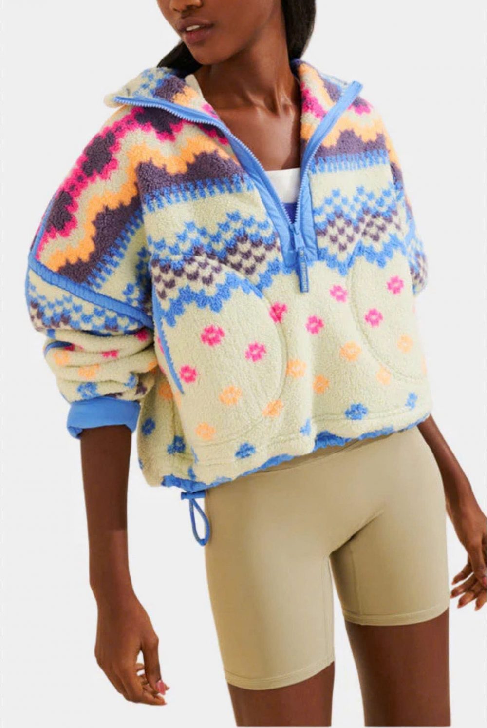 – Khoác lên mình lớp áo ấm áp, thoải mái trong những ngày se lạnh với Áo thun Mountain High 1/2 in họa tiết FP Movement™. Với cổ cao, khóa kéo nửa kín, tay dài, vai trễ và dáng suông rộng rãi, thoải mái, hơi ngắn.