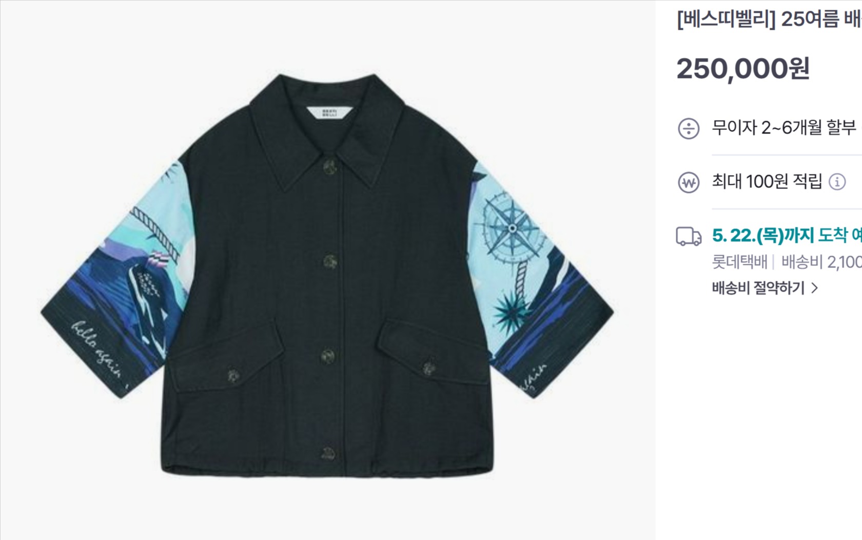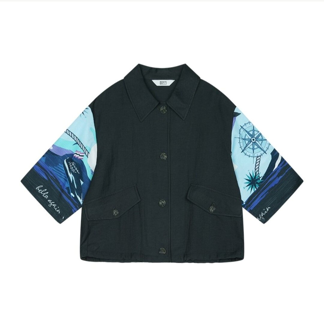 BestiBelli Color Block Printing Two Pocket Jacket E2143GY size 66