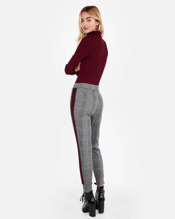 EXPRESS High Waisted Plaid Side Stripe Jogger Pants