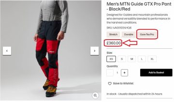 Berghaus Men’s MTN Guide GTX Pro Pant 4A001224HQ6 size M